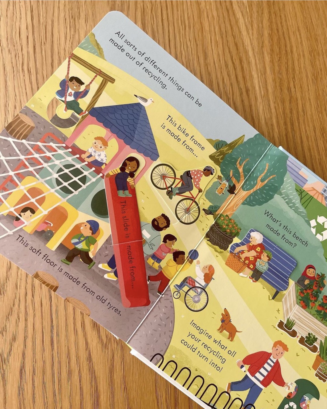 Beep, Beep! The recycling truck has arrived! Peep under flaps and through holes to find out how it works, as it trundles around town collecting recycling and taking it to the sorting factory. This friendly