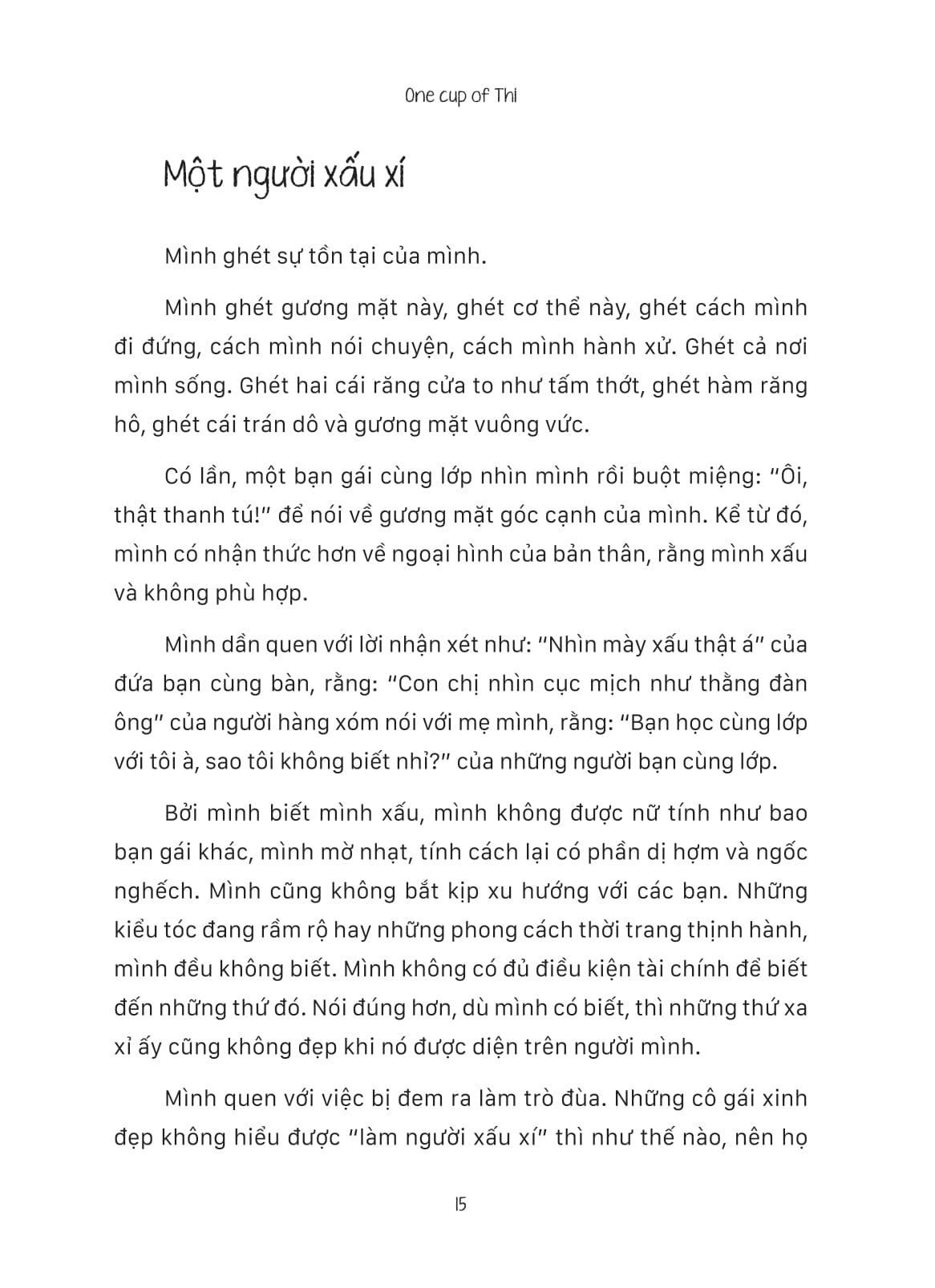 One cup of Thi (Minh Thi) là người sản xuất nội dung, chủ nhân kênh podcast và page One cup of Thi, đăng tải những nội dung xoay quanh việc thực hành quan sát và suy tưởng về cuộc sống, hành trình trưởng thành. Tự nhận m.ình là một người kỳ cục, đi chậm và cô độc, Thi tin rằng nghệ thuật và con chữ có thể trở thành nơi trú ẩn để chúng ta được tự do thể hiện và lắng nghe chính m.ình nhiều hơn.