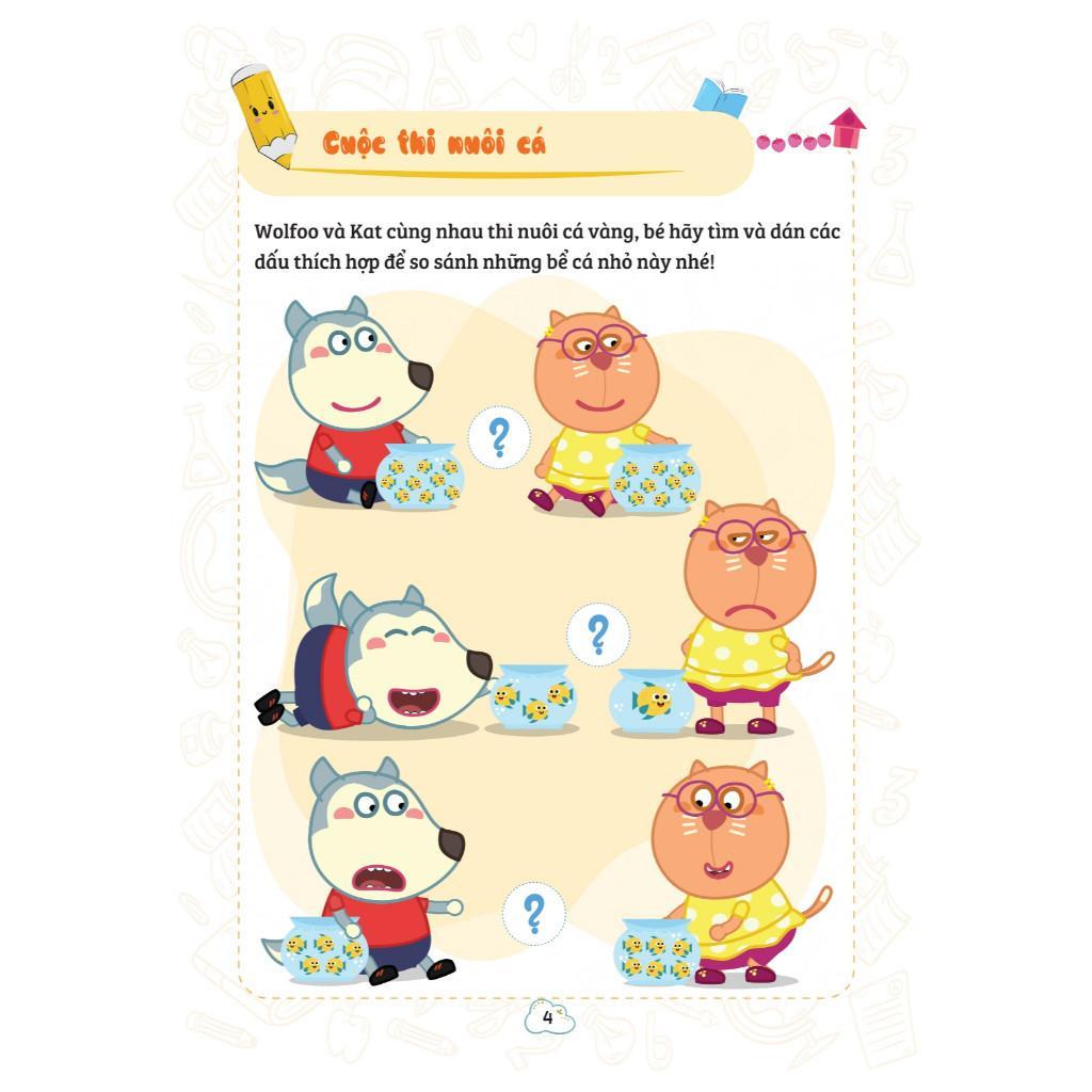 Cuốn sách thuộc trong bộ sách “Wolfoo khám phá toán học vui” gồm 4 cuốn dành trẻ từ 3 đến 6 tuổi. Được thiết kế theo hướng giúp trẻ trải nghiệm, làm quen với những kiến thức toán học cơ bản như: số đếm, phép tính, so sánh và phân biệt các đối tượng, nhận biết hình học cơ bản…Các đơn vị bài học đều được chia thành các chủ điểm kết hợp với các hoạt động thú vị như tập đếm, trả lời câu hỏi, ghép tranh, thực hành với hệ thống bài tập tương tác kết hợp dán sticker, tô màu theo phương pháp từ đơn giản tới phức tạp để giúp trẻ phát triển toàn diện khả năng tư duy logic, suy luận, đánh giá tổng quát và chi tiết từng vấn đề.
