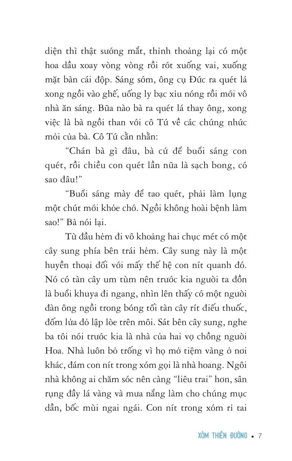 Các xóm nhỏ chất chứa bao niềm vui nỗi buồn cùng lẽ vô thường của đời sống, vừa có đặc trưng của phố thị huyên náo, lại vẫn đan xen những khoảng trầm lắng vô cùng giữa Sài Gòn. Xóm thiên đường là một nơi chốn như vậy.