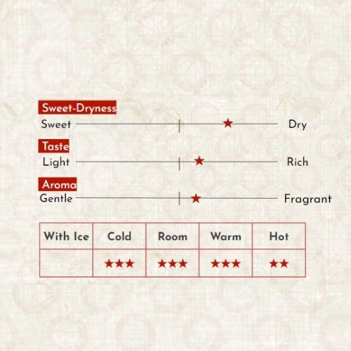 Ayane Junmai Ginjo Cái tên Ayane bắt nguồn từ tên con gái của chủ tịch công ty Yasuo Kiuchi. Ông Ayouno Kitaura(người đã thiết kế nhãn cho "Junmai Ginjo Sake Ayane", mà Công ty TNHH Nhà máy bia Sake Wakamiya đã bán trong bảy năm) đã lấy cảm hứng từ tình tiết đó với một bức ảnh của cô ấy, và quyết định "lấy chính Ayane làm họa tiết của thiết kế". Kết quả là một thiết kế tuyệt vời trong đó bầu trời đầy sao của Ayabe được chiếu lên tóc của Ayane. Junmai Ginjo, Ayane đặc biệt quan tâm đến "sản xuất địa phương để tiêu thụ tại địa phương, tất cả Ayabe" và sử dụng tất cả loại gạo sake "Gohyakumangoku" được ông Nakatsukuma, một nông dân ở thành phố Ayabe, chăm sóc chu đáo và nước nấu rượu là của riêng xưởng rượu, nước ngọt chảy ra từ giếng và cầu nguyện tại Đền Wakamiya, cũng trong thành phố. “Âm thanh của Ayakomachi” vang vọng nhẹ nhàng bên trong nhà máy rượu và “âm thanh mang màu sắc của Ayabe” có thể được nghe thấy trong suốt các mùa. Hi vọng rằng bạn sẽ tận hưởng được vị ngọt dịu của rượu sake này khi cảm nhận theo cách này. Dòng sake: Junmai Ginjo. Gạo dùng: Tỉ lệ đánh bóng gạo: 55% Tỉ lệ axit: Sake Meter Value (SMV): Thành phần: gạo (sản xuất trong nước), men gạo (gạo sản xuất trong nước) Thể tích: 720ml. Lưu ý: Trên 20 tuổi mới được phép dùng. Phụ nữ có thai hoặc cho con bú nên hạn chế sử dụng. Bảo quản nơi mát lạnh, tránh ánh nắng trực tiếp. Để đảm bảo chất lượng sake nên bảo quản trong ngăn mát tủ lạnh khi không dùng hết. Nồng độ cồn: 15% NSX: Wakamiya Shuzo Co., Ltd. NK&PP: Công ty TNHH Starmark Vietnam Xuất xứ: Nhật Bản