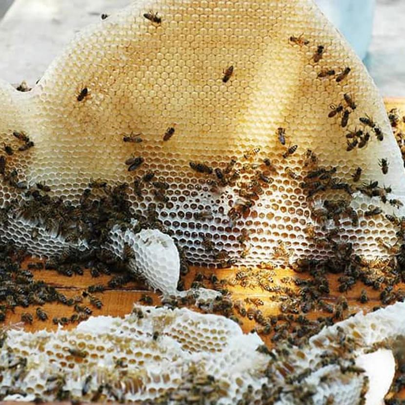 Sáp Ong được thu hoạch từ trang trại nuôi ong lấy mật, các trang trại di chuyển đàn ong đến nhưng nơi có nhiều hoa để thu hoạch mật ong. Tính trung bình thu hoạch 100 lít Mật Ong sẽ thu được 1-2 Kg Sáp Ong Nguyên Chất.