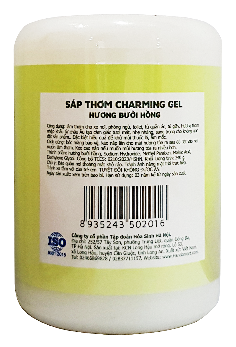 THÔNG TIN SẢN PHẨM Tên sản phẩm : Sáp thơm phòng Hando 87g Thành Phần : Polysorbate 20, Sodium Alginate, Methyl Paraben, hương liệu, dung mô Mùi hương : Hương Hoa Hồng (Hồng), Hương Táo