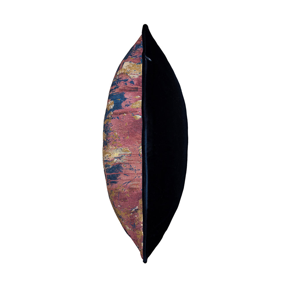 Miêu tả: Một thiết kế hình học hiện đại từ Scatter Box được in kỹ thuật số trên vải giống như vải lanh với mặt trái phối hợp bằng nhung. Kết hợp với nhiều vật phẩm