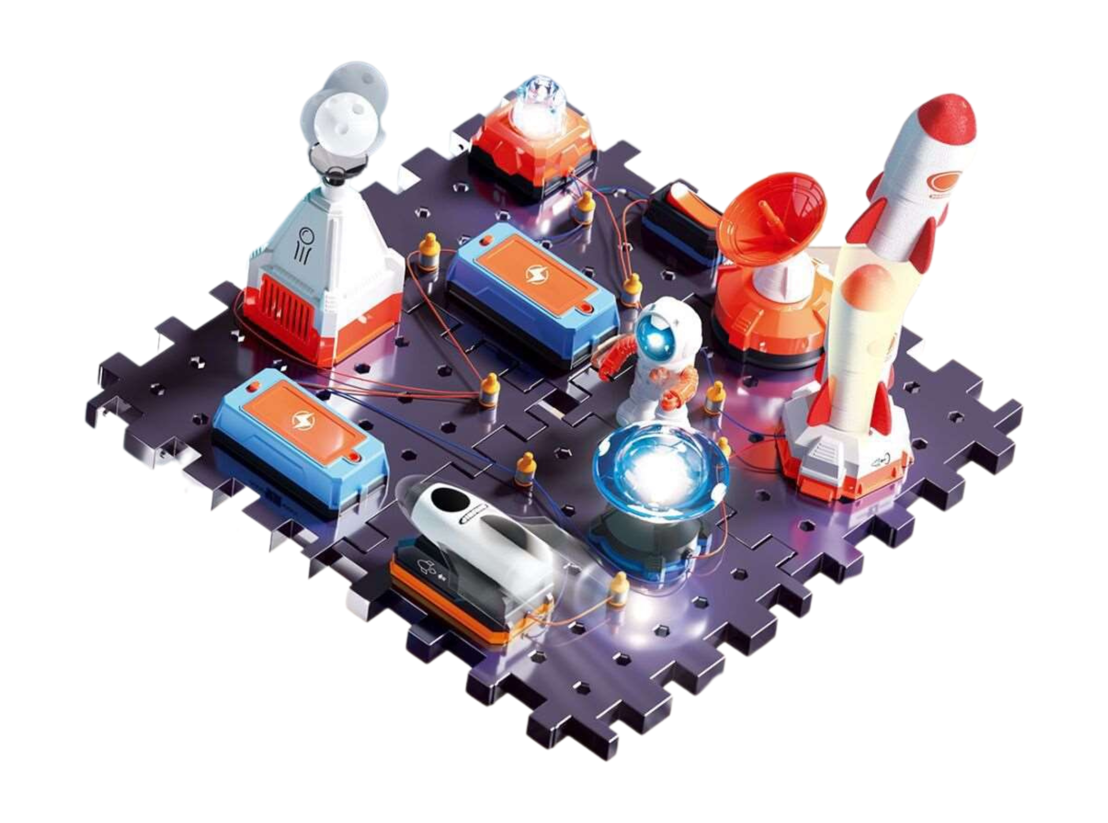 Bộ lắp ráp điện tử Không Gian Khám phá không gian cùng bộ lắp ráp điện tử siêu thú vị! Bé tự tay lắp ráp tàu vũ trụ, đèn chiếu và trạm không gian hoạt
