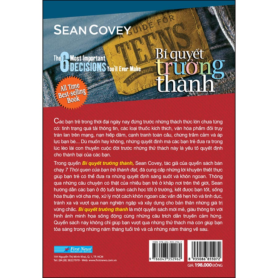 Những Quyết định Cần thiết để Trưởng thành của Sean Covey sẽ giúp bạn thoát khỏi những phân vân, thậm chí là tâm trạng hoang mang, khủng hoảng của thời niên thiếu. Được xây dựng trên nền tảng của cuốn 7 Thói quen của Bạn trẻ Thành đạt, có thể nói đây là đứa con tinh thần thứ hai mà Sean Covey đã dành rất nhiều tâm huyết. Những vấn đề về học hành, gia đình, bạn bè, tình yêu, lối sống… được đề cập với một văn phong trẻ trung, và còn hấp dẫn bởi những hình minh họa dí dỏm, vui tươi. Khi tiếp xúc với quyển sách này, nhiều độc giả đã nhận xét rằng nó thậm chí còn hay hơn cả quyển thứ nhất, mặc dù quyển thứ nhất đã rất tuyệt vời!