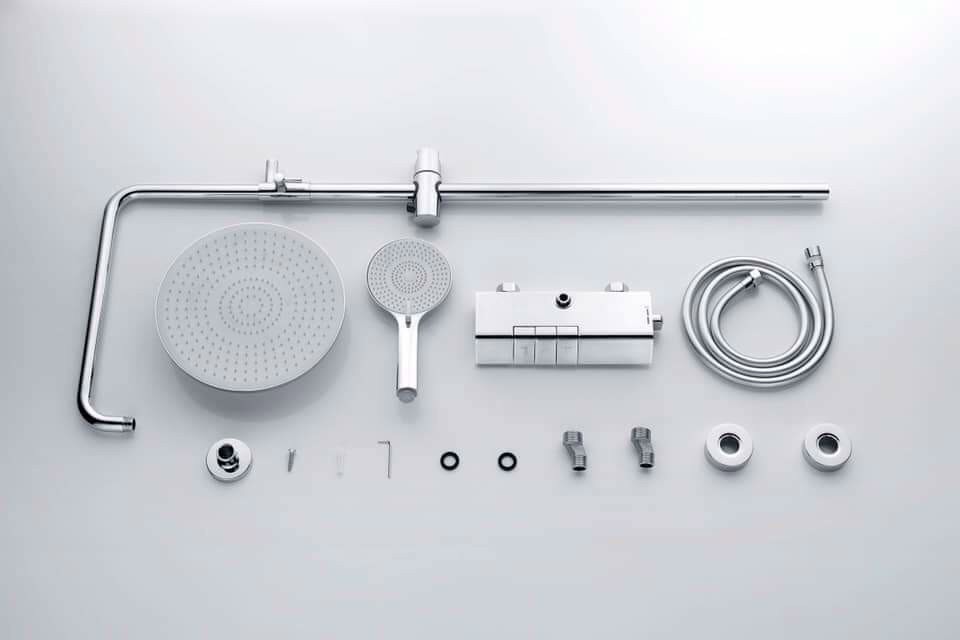 - Bộ sản phẩm gồm: 1 củ sen có vòi xả phụ, 1 dây dẫn nước, 1 tay sen, 1 bát sen, 1 ống đứng & các đầu ốc đi kèm.
