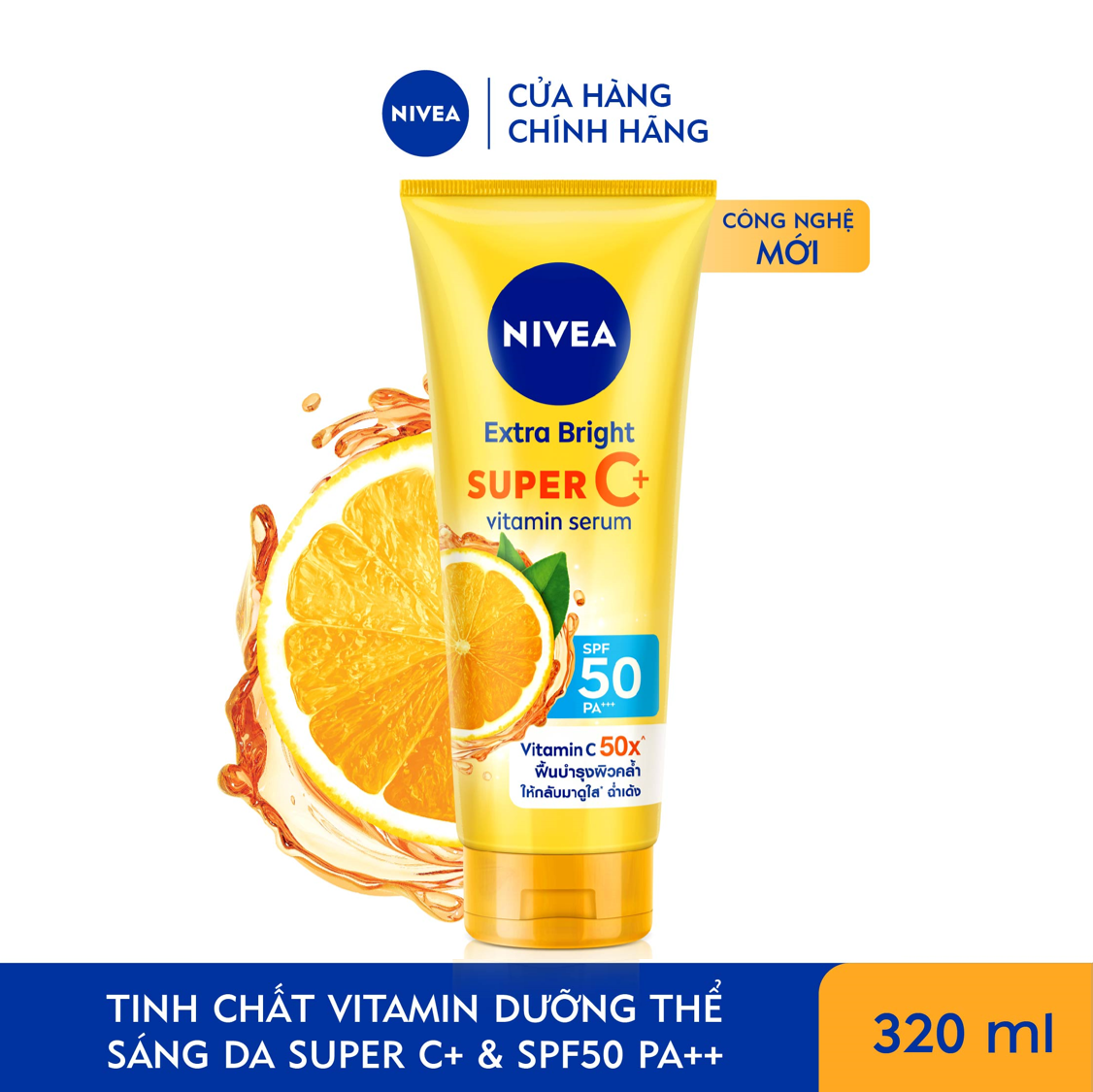 Serum Dưỡng Thể Nivea Vitamin Super C+ 320ml - 98448 Công thức cô đặc tác động kép giúp dưỡng làn da sáng mượt từ bên trong và tạo màn chống nắng hiệu