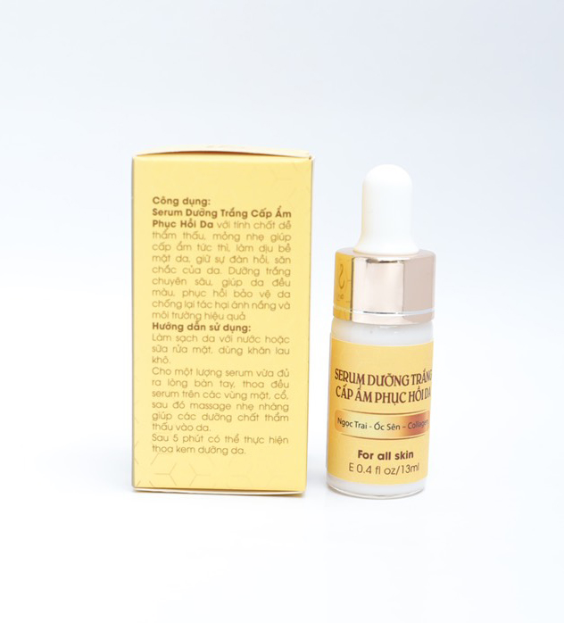 Mua tại TiktokSerum dưỡng trắng cấp ẩm phục hồi da với tinh chất dễ thẩm thấu, mỏng nhẹ giúp cấp ẩm tức thì, làm dịu bề mặt da, giữ sự đàn hồi, săn chắc cho da. Dưỡng trắng chuyên sâu, giúp da đều màu, phục hồi bảo vệ da chống lại tác hại ánh nắng và môi trường hiệu quả.