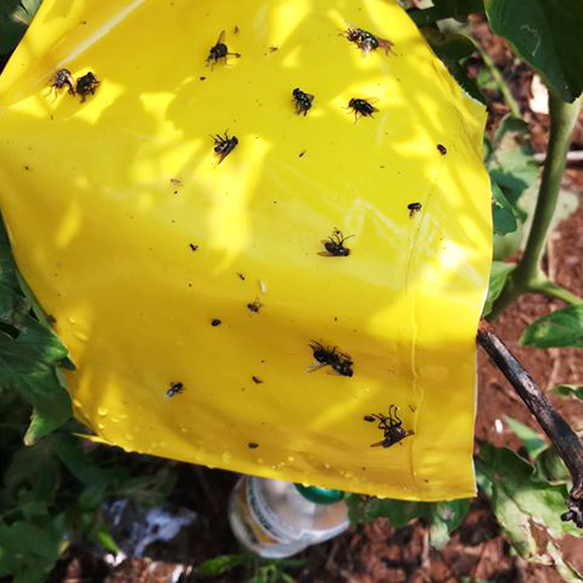 - Công năng bẫy côn trùng màu vàng Israel: “Dẫn dụ” và “Bẫy” các loại côn trùng như ruồi đục trái, ruồi vàng, bọ phấn trắng, bọ trĩ, bọ nhảy, sâu vẽ bùa, bướm trắng, ốc sên … và bị keo dính lại