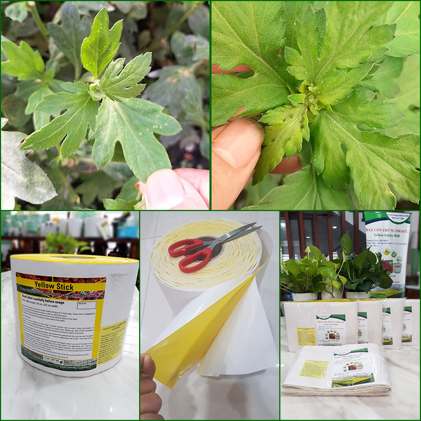 BẪY CÔN TRÙNG ISRAEL TRONG HOA CÚC TRANG TRẠI NÔNG NGHIỆP + Bẫy côn trùng ISRAEL (Sticky Yellow Roll) là dạng bẫy dính hấp thụ côn trùng bằng màu sắc với một lớp keo mỏng