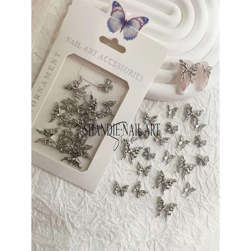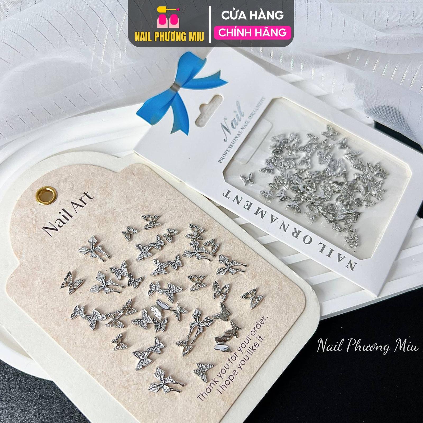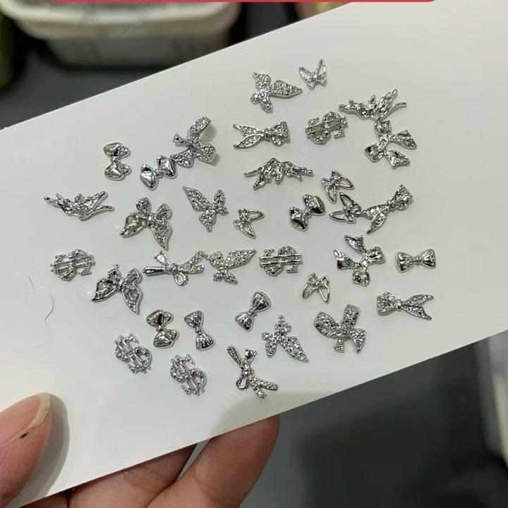 ✨Set 50 Charm Bướm Nơ Kim Loại Đính Móng Hàn Quốc Làm Nail, Charm Nơ Mix Bướm Màu Bạc Trắng Gắn Móng Siêu Đáng Yêu Nữ Women