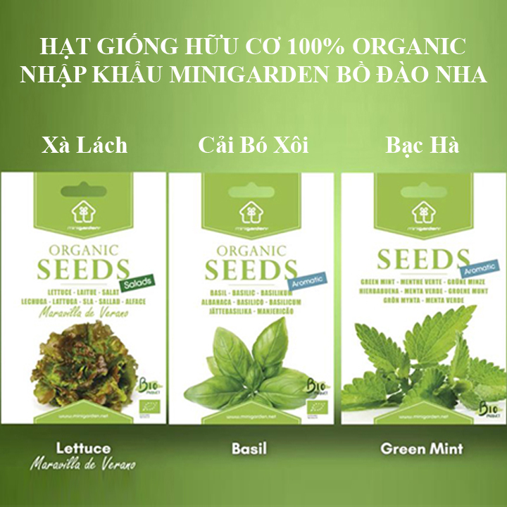 Hạt giống hữu cơ Minigarden tổng cộng có 7 loại hạt giống: