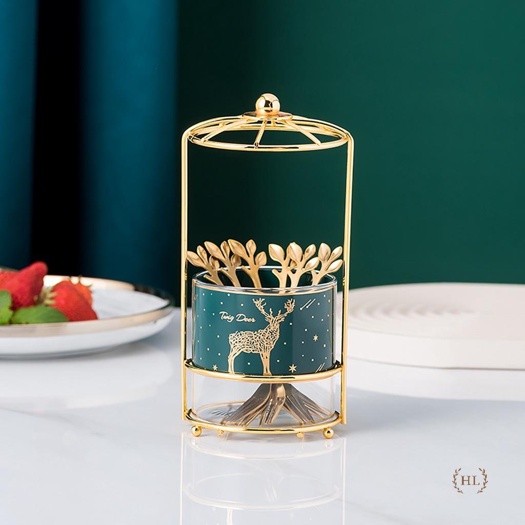 Chi tiết: Set bao gồm 1 Cốc + 1 khung hợp kim mạ vàng + 6 Nĩa