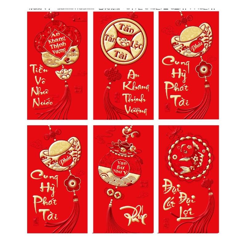 ✨Set 6 phong bao lì xì tết đỏ thắm, chất đẹp, phong cách truyền thống (giao mẫu ngẫu nhiên)