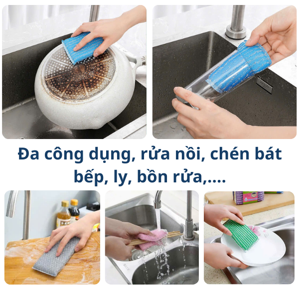 - Túi 5 Miếng Rửa Chén Nhật Bản có một mặt ráp dễ dàng cho việc vệ sinh bát đũa xoong nồi. - Đánh bật tất cả các vết bẩn cứng đầu bám lại trên