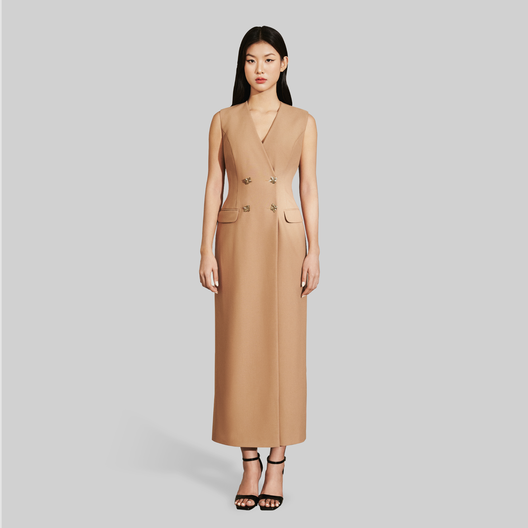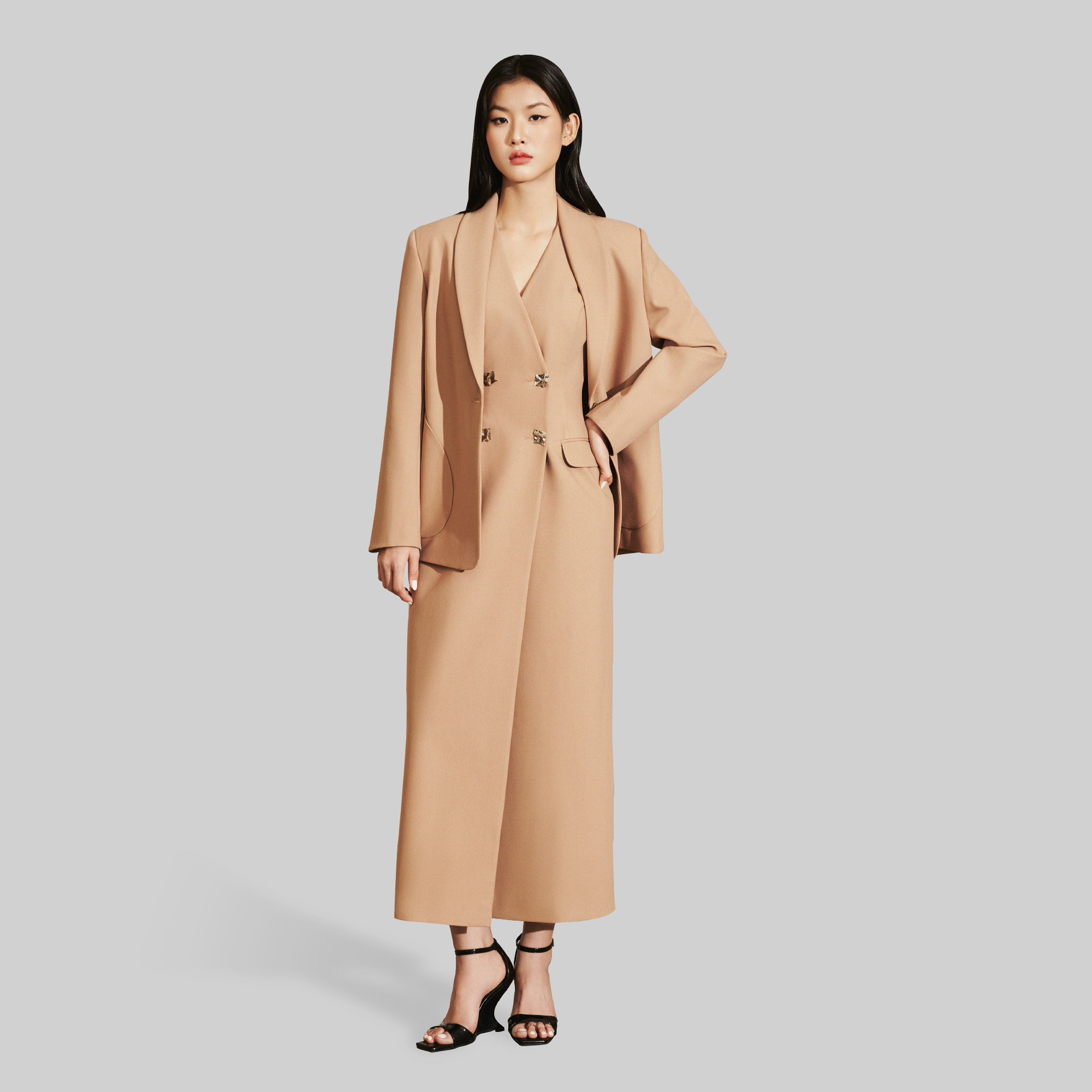 ✨Set áo blazer nữ kết hợp cùng đầm không tay dáng dài CADEN màu nâu thiết kế cao cấp WHITE CHIC