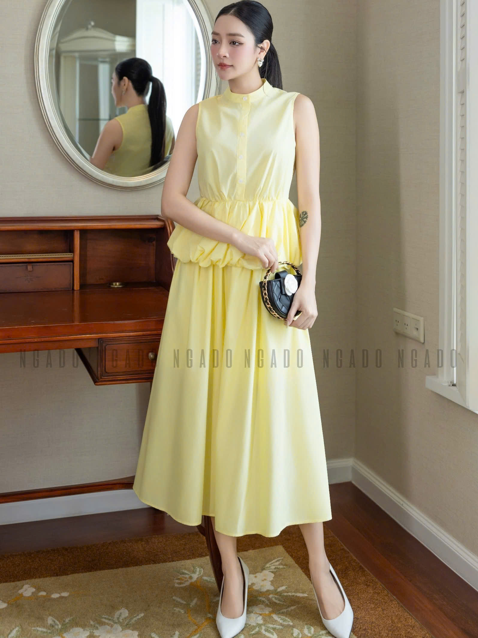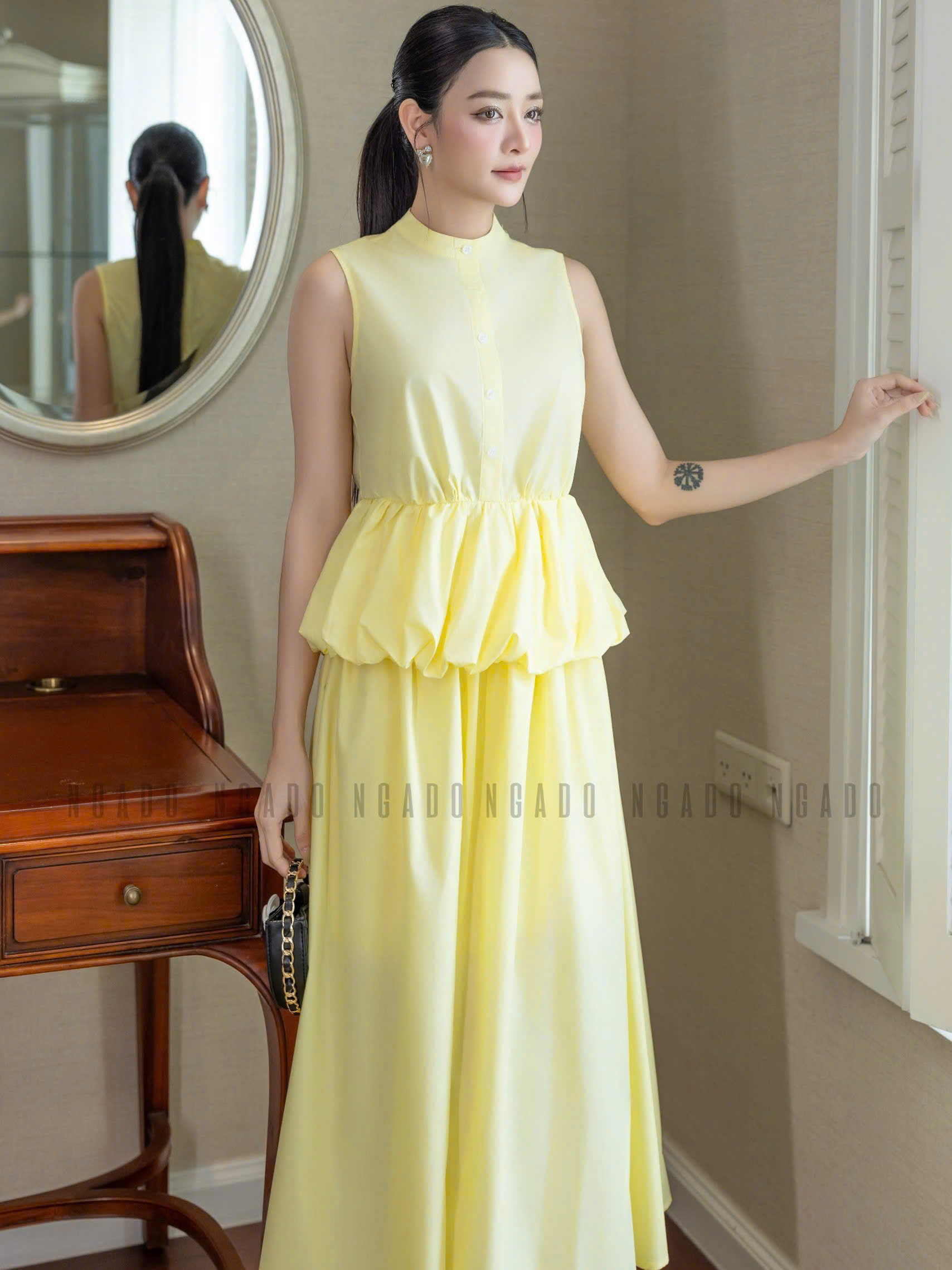 ✨Set áo váy vàng cổ trụ NGADO , set áo váy dài , set công sở , dự tiệc