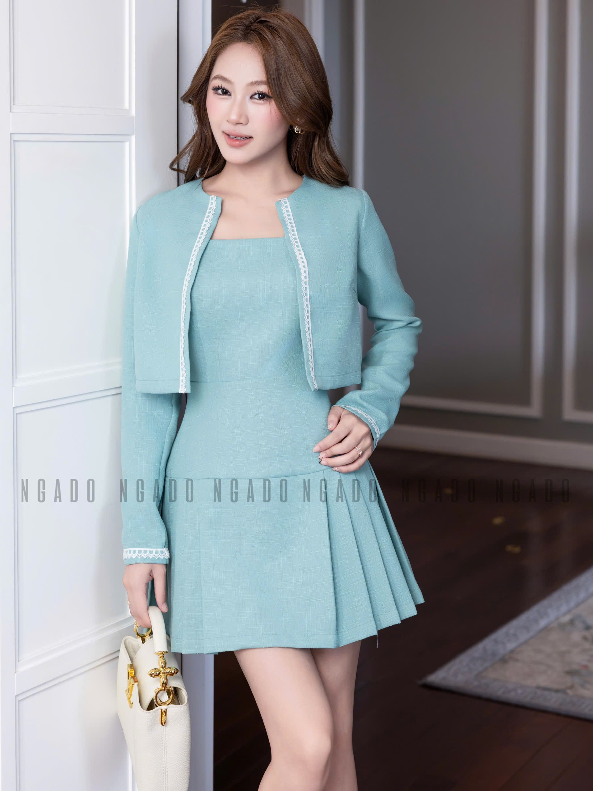 ✨Set áo váy xanh mint dài tay NGADO , set áo váy , set dự tiệc , công sở