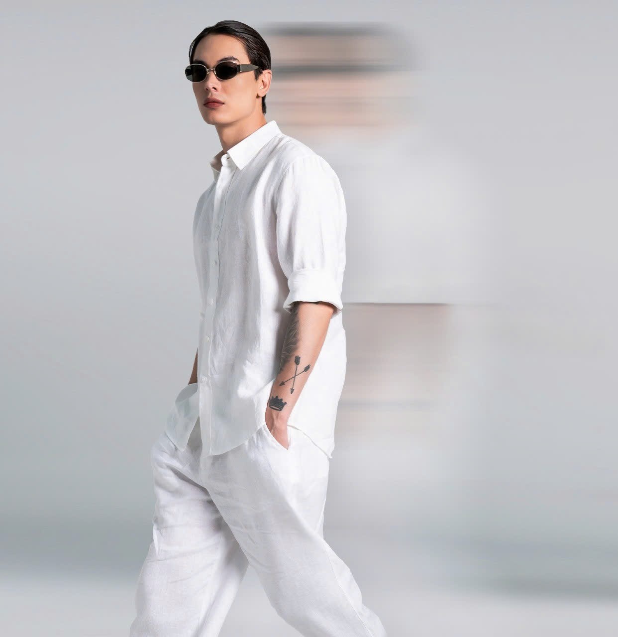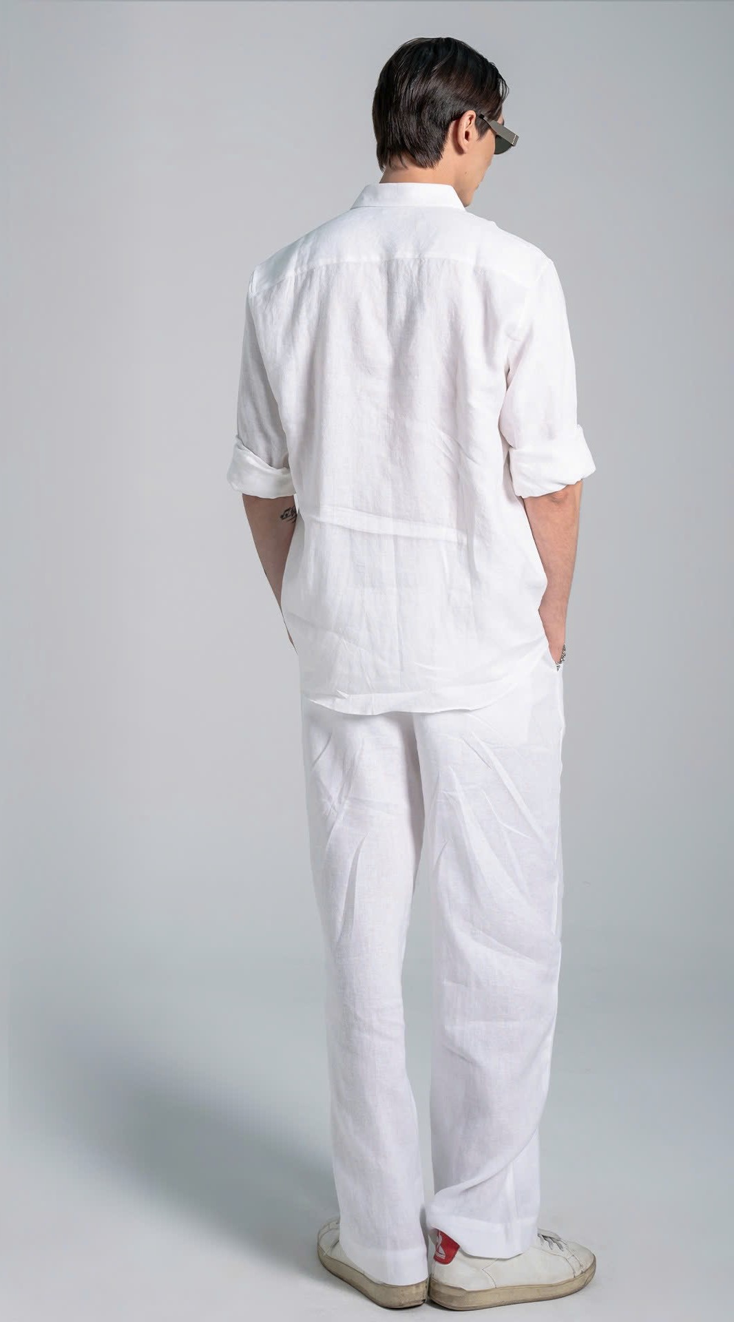 ✨Set Bộ Sơ Mi Nam Basic Áo Dài Tay Mix Quần Suông Ống Rộng Vải Linen Sợi Tự Nhiên Mát Mẻ