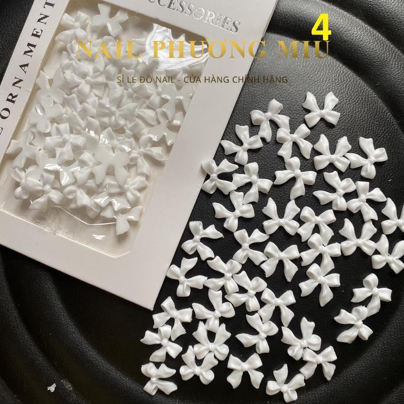 ✨Set Charm Nơ Trắng Nhựa Hàng Đẹp Gắn Móng Làm Nail Phương Miu Kiểu Hàn Quốc Đế Bằng Dễ Đính Nữ Women
