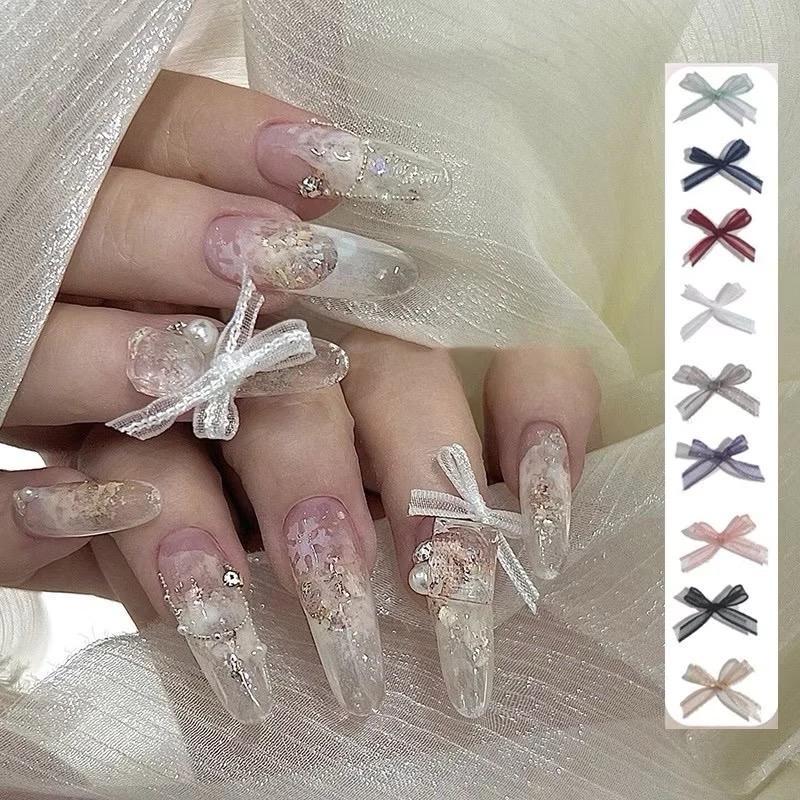 ✨Set Charm Nơ Vải Lụa Mix Ngọc Trai Trang Trí Móng Độc Lạ, Làm Nail Sành Điệu Sang Chảnh Cho Nàng Nữ Women
