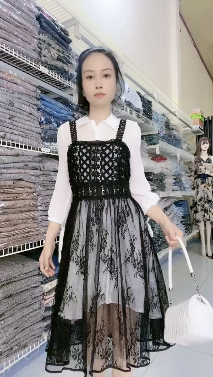 Đầm xếp ly voan lụa phối ren cao cấp Mã: DLBG010 Màu: Đen Chất liệu: Voan lụa, ren thêu loại 1 bền chắc Số đo vòng1/vòng2(cm): 80/70
