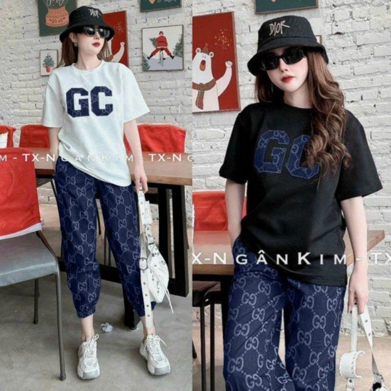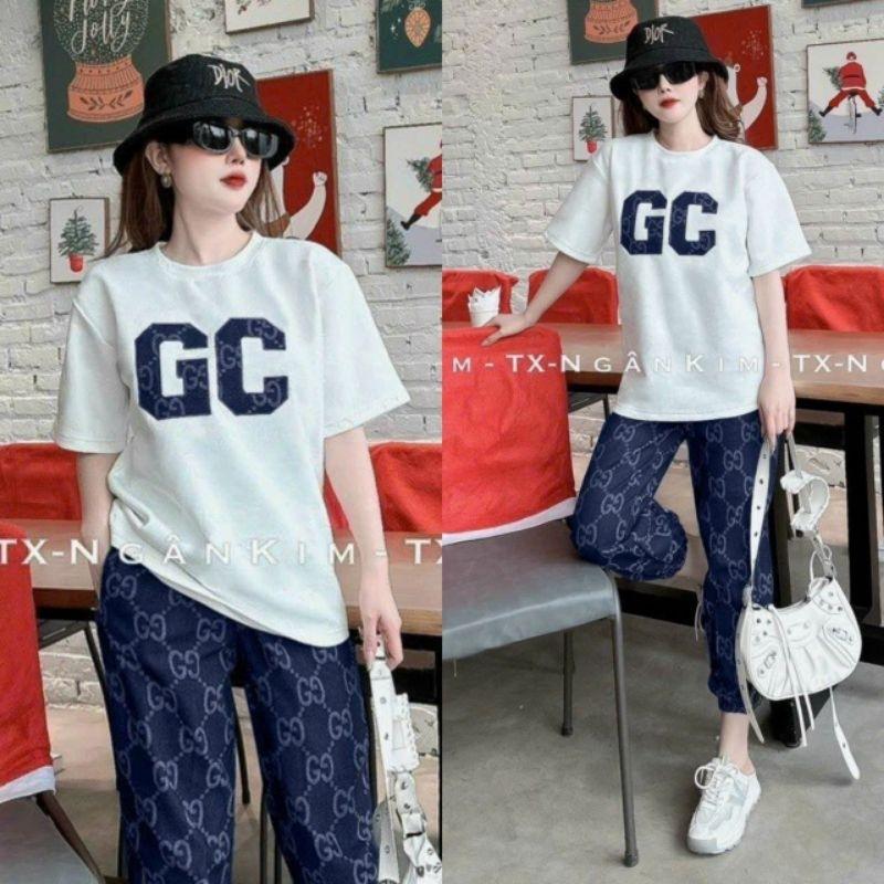 ✨Sét đồ bộ nữ bigsize form rộng thêu chữ GC, sét bộ đồ mặc ở nhà siêu xinh