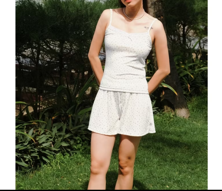 Bộ short nữ WANNABE BSS03 bộ sọt gồm quần đùi áo 2 dây lưng kiểu ba lỗ cho bạn gái thêm năng động Đồ bộ mặc nhà Wannabe BSS03 thiêt kế kiểu dáng hai dây
