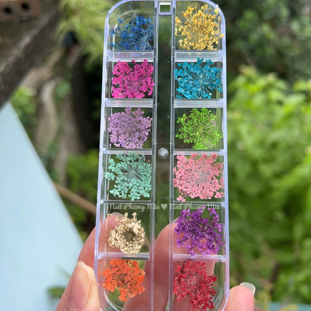 - Chùm Hoa Siêu Nhiều: Mỗi set hoa khô chứa nhiều bông hoa, bạn có thể cắt nhỏ bông hoa ra để kết hợp cùng giấy bạc, tạo nên hiệu ứng lấp lánh và đẹp mắt trên móng tay.