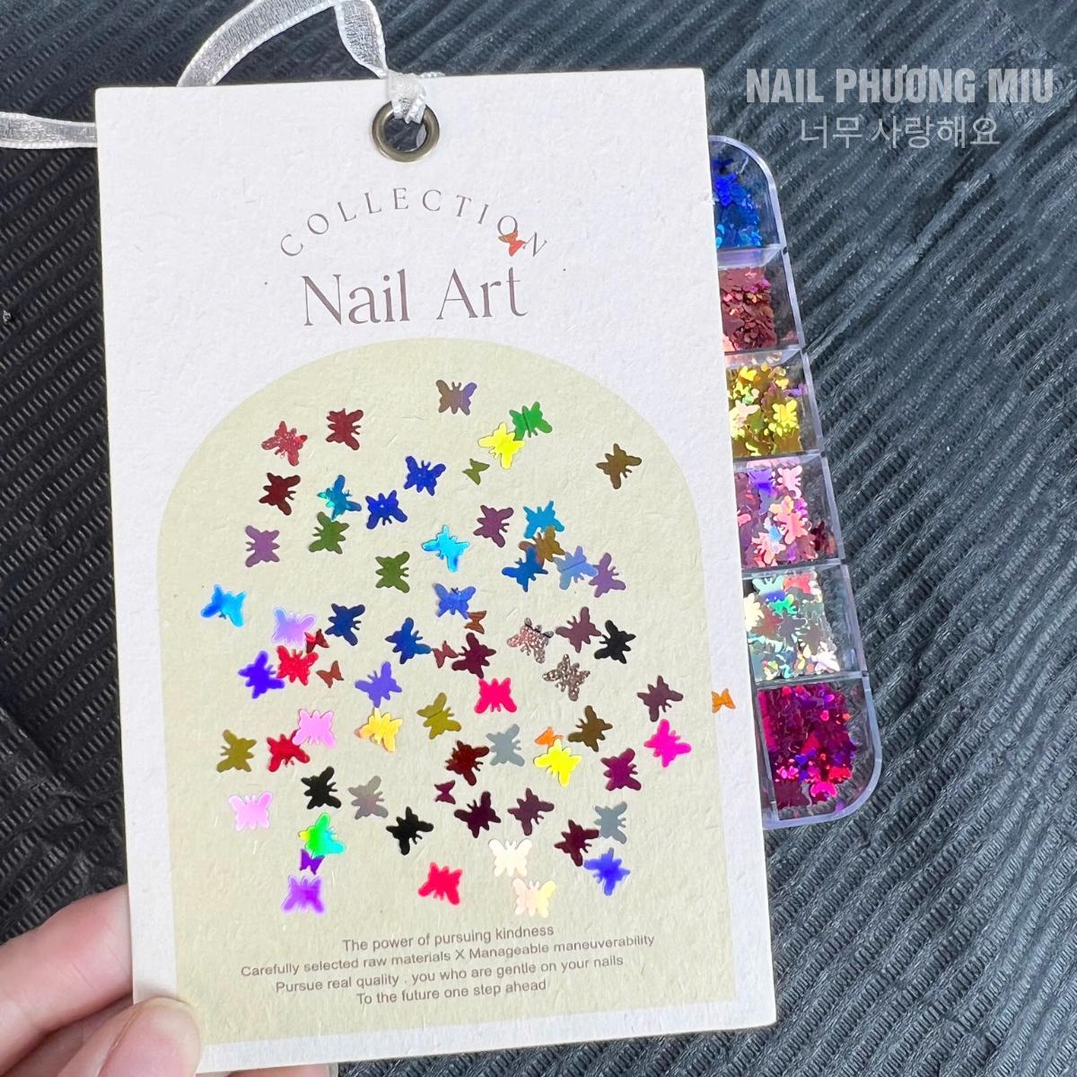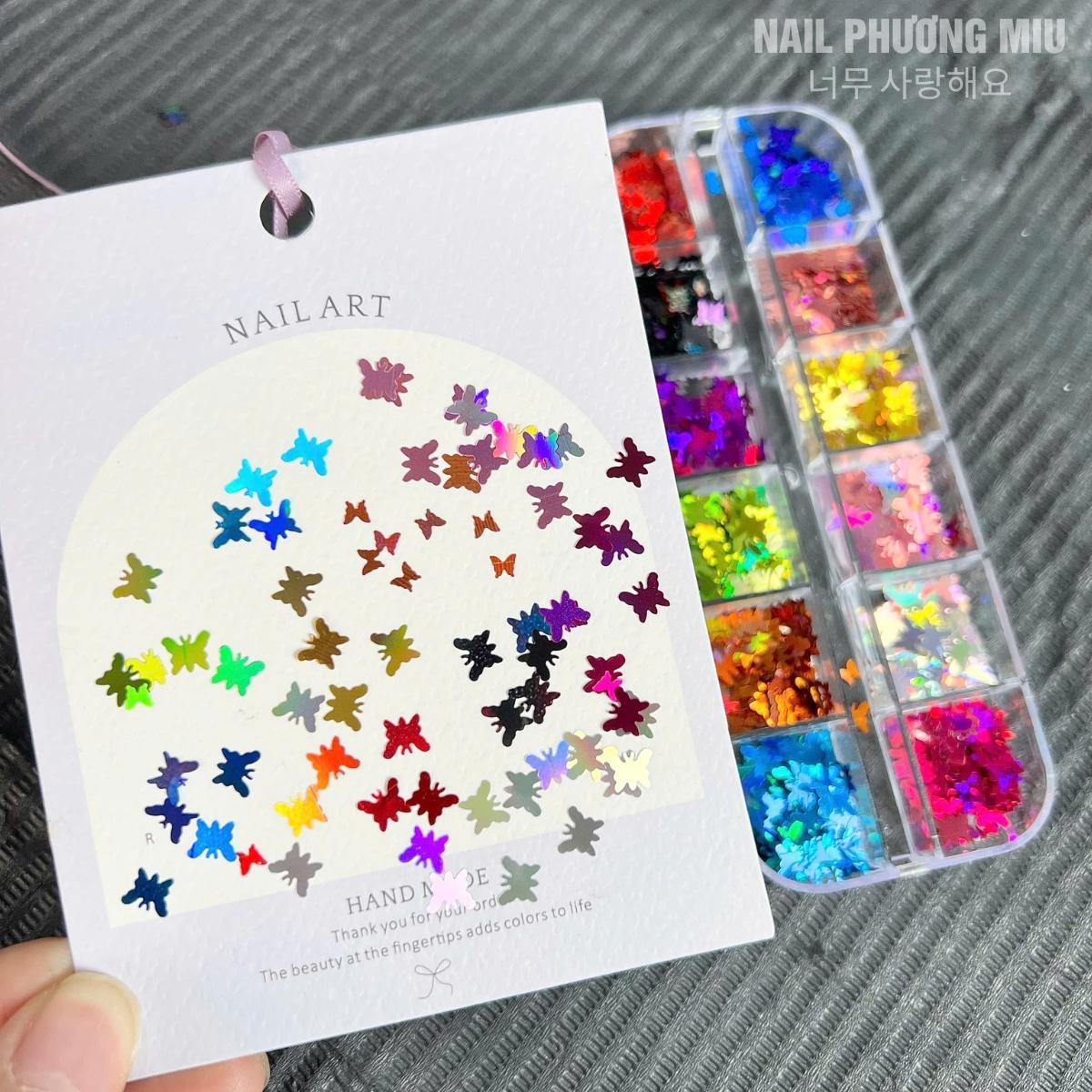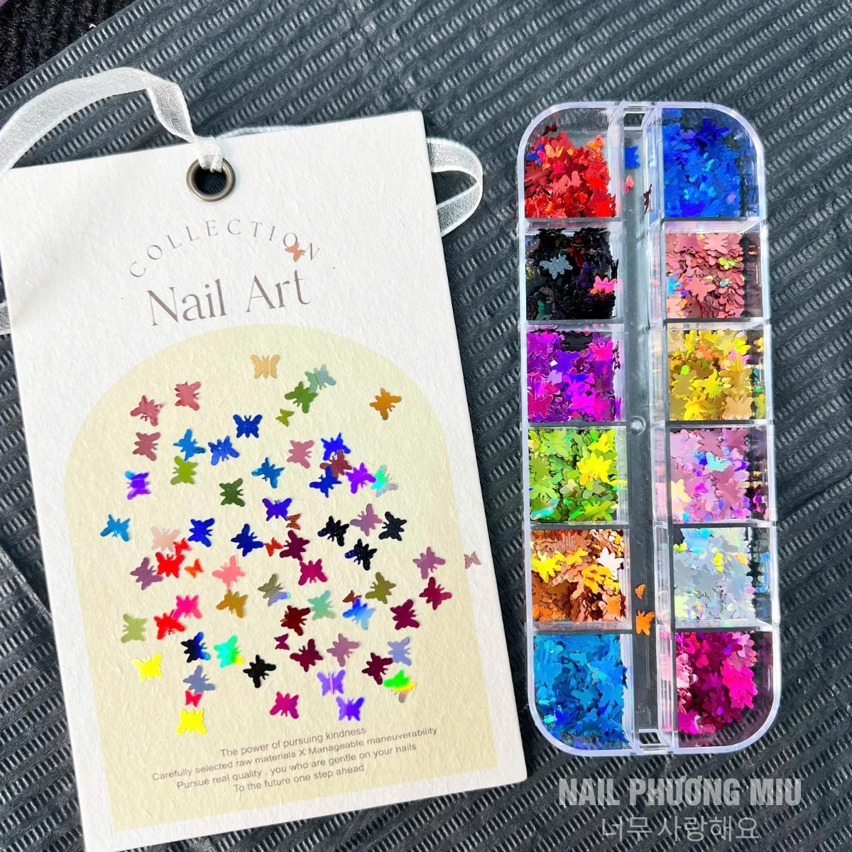 ✨Set Kim Tuyến 12 Màu Lá Phong Bướm Sequin Làm Nail Siêu Lấp Lánh, Lá Thông Siêu Mỏng Dễ Đắp, Tạo Móng Sinh Động