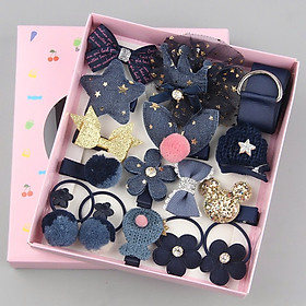 HỘP KẸP/ CỘT TÓC 18 CHI TIẾT CHO BÉ Hộp 18 phụ kiện gồm kẹp tóc, gắp tóc đủ loại, nơ, vương miệ ĐẶC ĐIỂM NỔI BẬT: - Đối với tất cả bé gái, những
