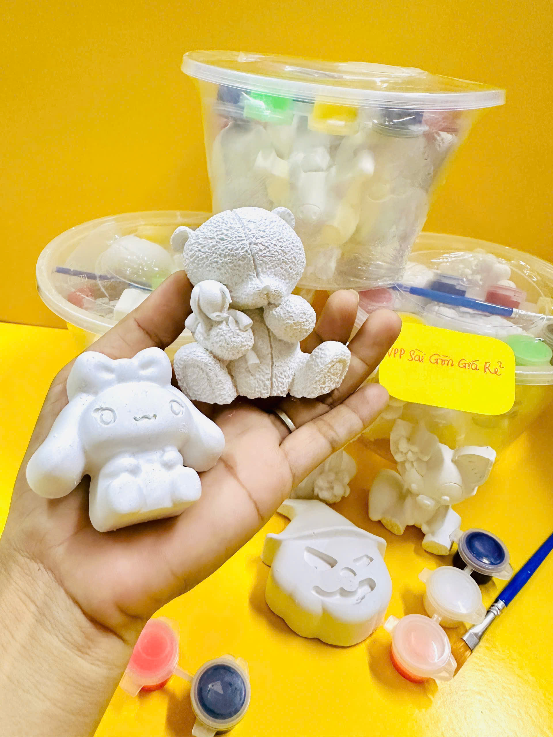 -Bộ tô tượng màu cho bé được làm từ thạch cao với những hình đáng yêu màu trắng, bé hãy sử dụng màu và bút vẽ kèm theo để tô tóc, mắt, trang phục....giúp bức tượng thêm sinh động và sống động nhé.