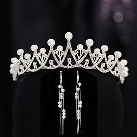 ✨Set vương miện và bông tai ngọc trai dáng dài trang điểm cô dâu