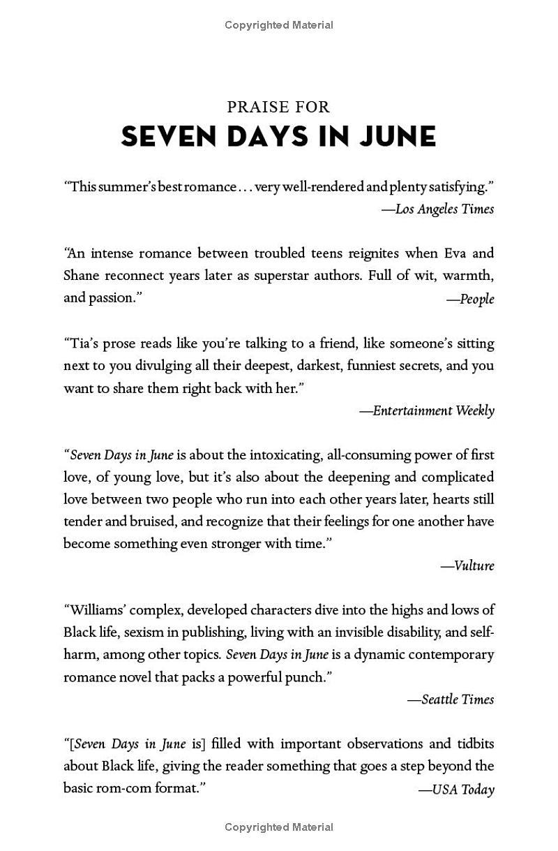 With its keen observations of creative life in America today, as well as the joys and complications of being a mother and a daughter, Seven Days in June is a hilarious, romantic, and sexy-as-hell story of two writers discovering their second chance at love.