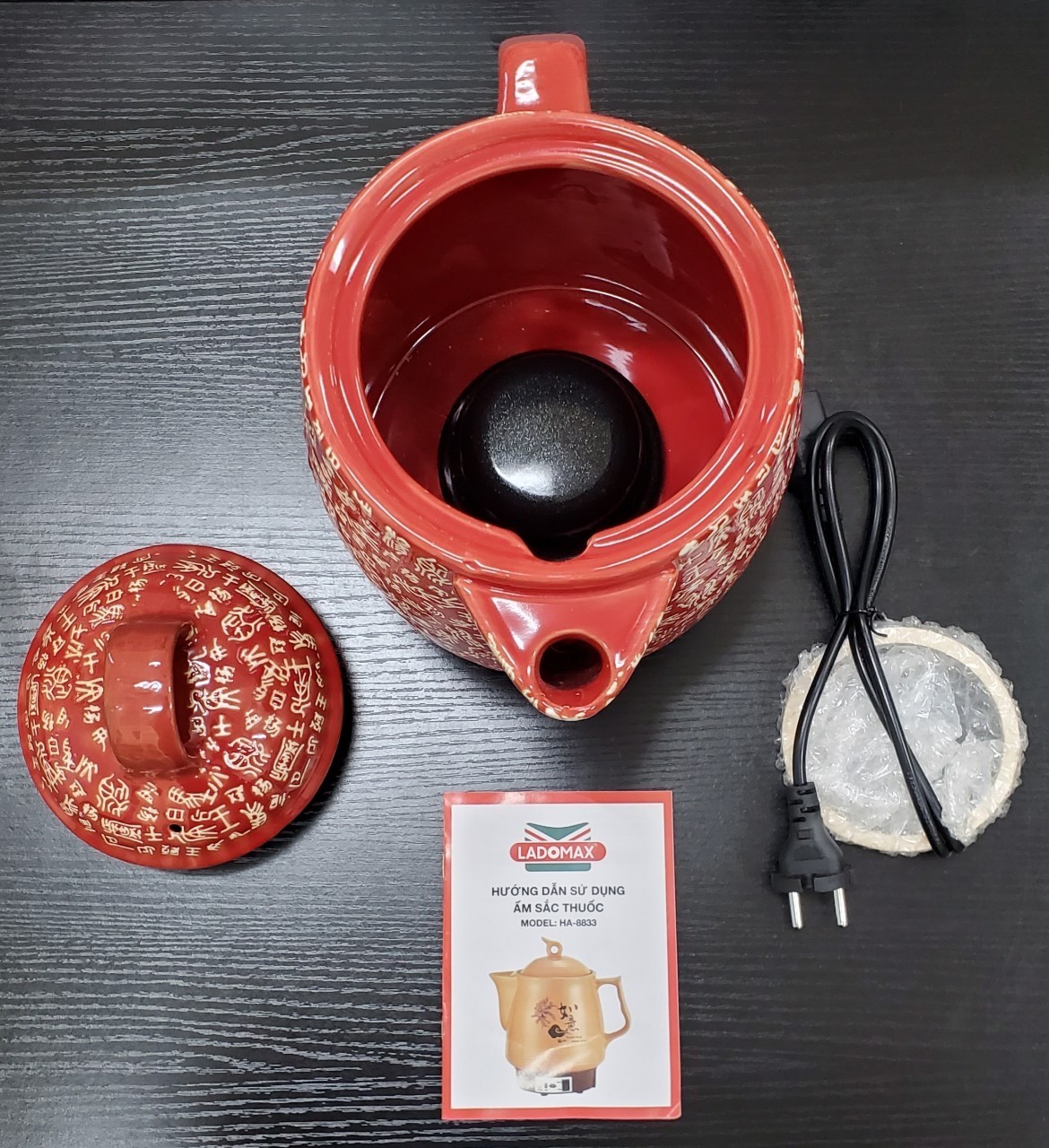 Mua tại TiktokTHÔNG SỐ KỸ THUẬT - Điện áp: 220V - 50Hz - Công suất: 450W - Dung tích: 3.3L - Chất liệu đầu đốt: Hợp kim phủ Ceramic chống dính - Chất liệu thân siêu thuốc: Gốm sứ chất lượng cao, không lẫn tạp chất, được tráng men - Chế độ nấu: Có chế độ nấu nhanh và nấu chậm - Cơ chế giữ ấm: Tự động chuyển sang giữ ấm khi sắc xong - Cơ chế an toàn: Tự ngắt nếu quá nhiệt - Âm thanh báo khi sắc xong: Chuông reo - Đèn báo: Đèn LED - Thương hiệu: Ladomax - Bảo hành: 12 tháng trên toàn quốc