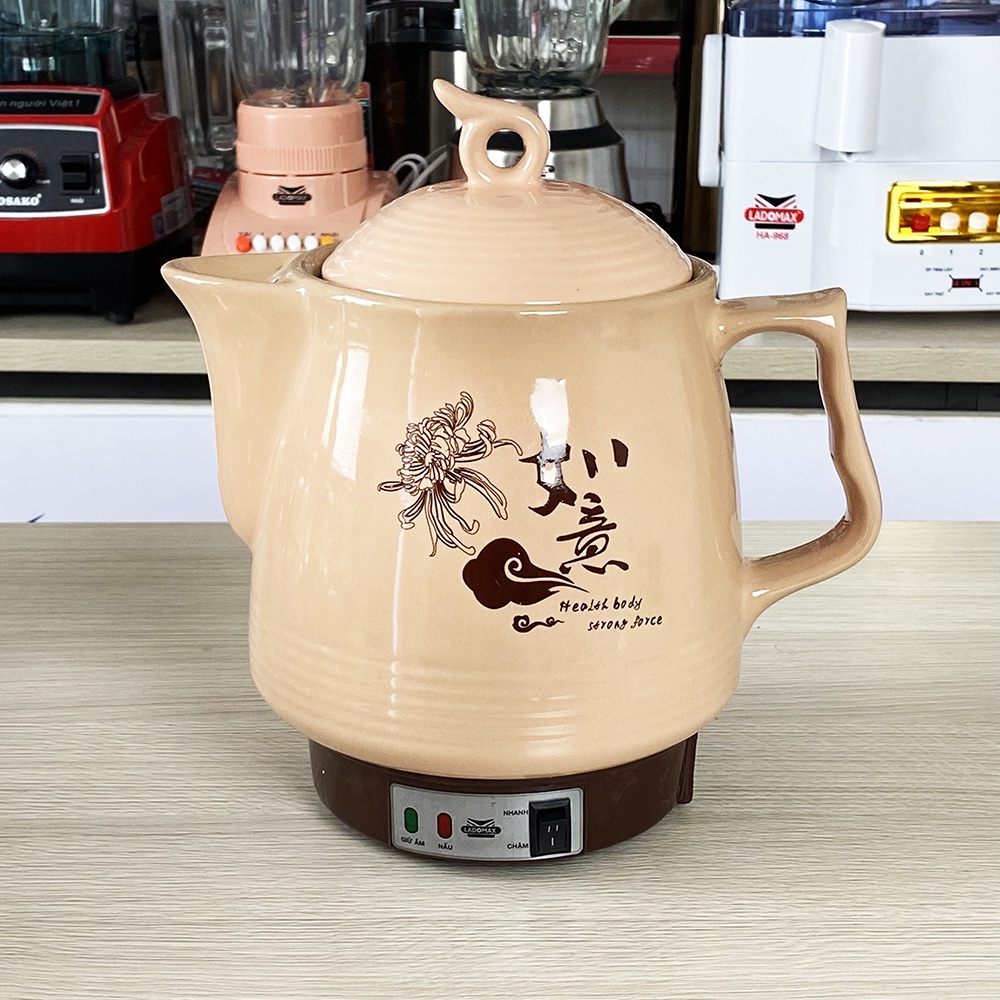 Dung tích: 2.8 L- Công suất: 450W- Thân ấm thiết kế với hoa văn ông già - củ sâm- Nguồn gốc sứ từ làng gốm Bát Tràng nổi tiếng- Chất liệu gốm được nung ở