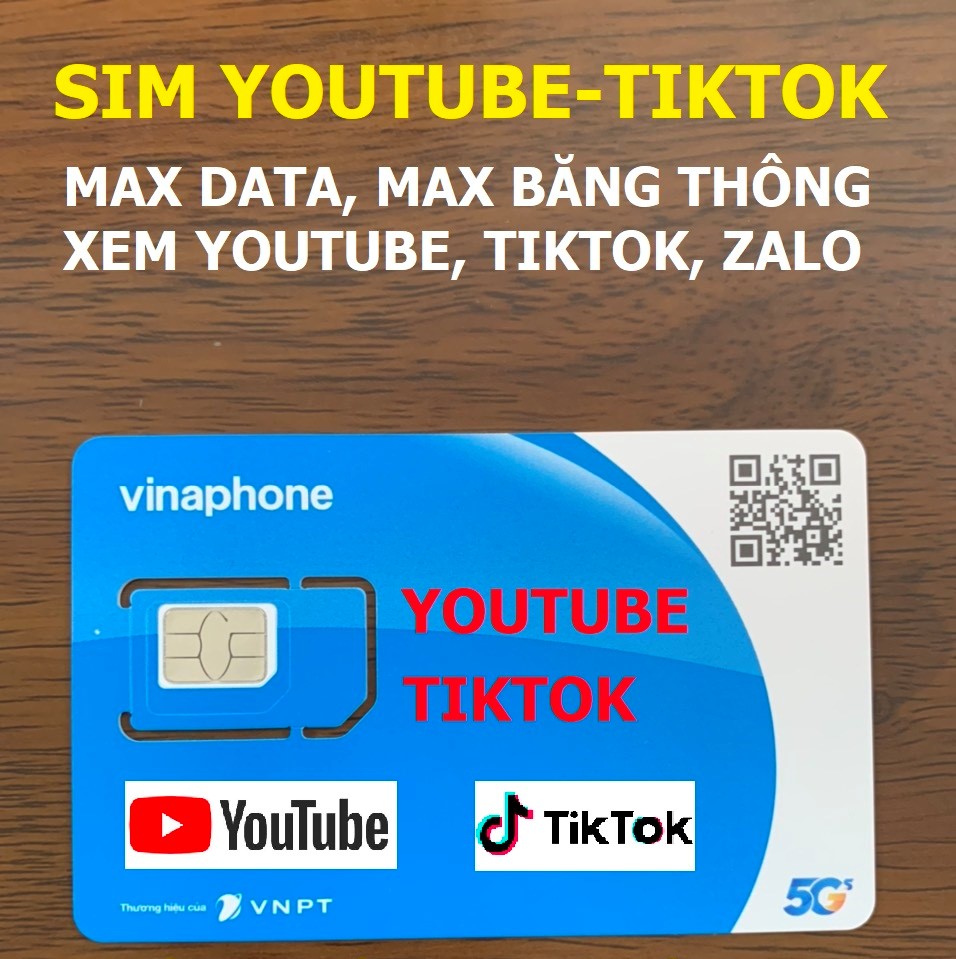 Sim MIỄN PHÍ TOÀN BỘ data khi xem Youtube, Tiktok và sử dụng với tốc độ luôn luôn cao. Ngoài ra còn được 5GB/NGÀY (150GB/tháng dùng tất cả các dịch vụ khác), sim dùng toàn