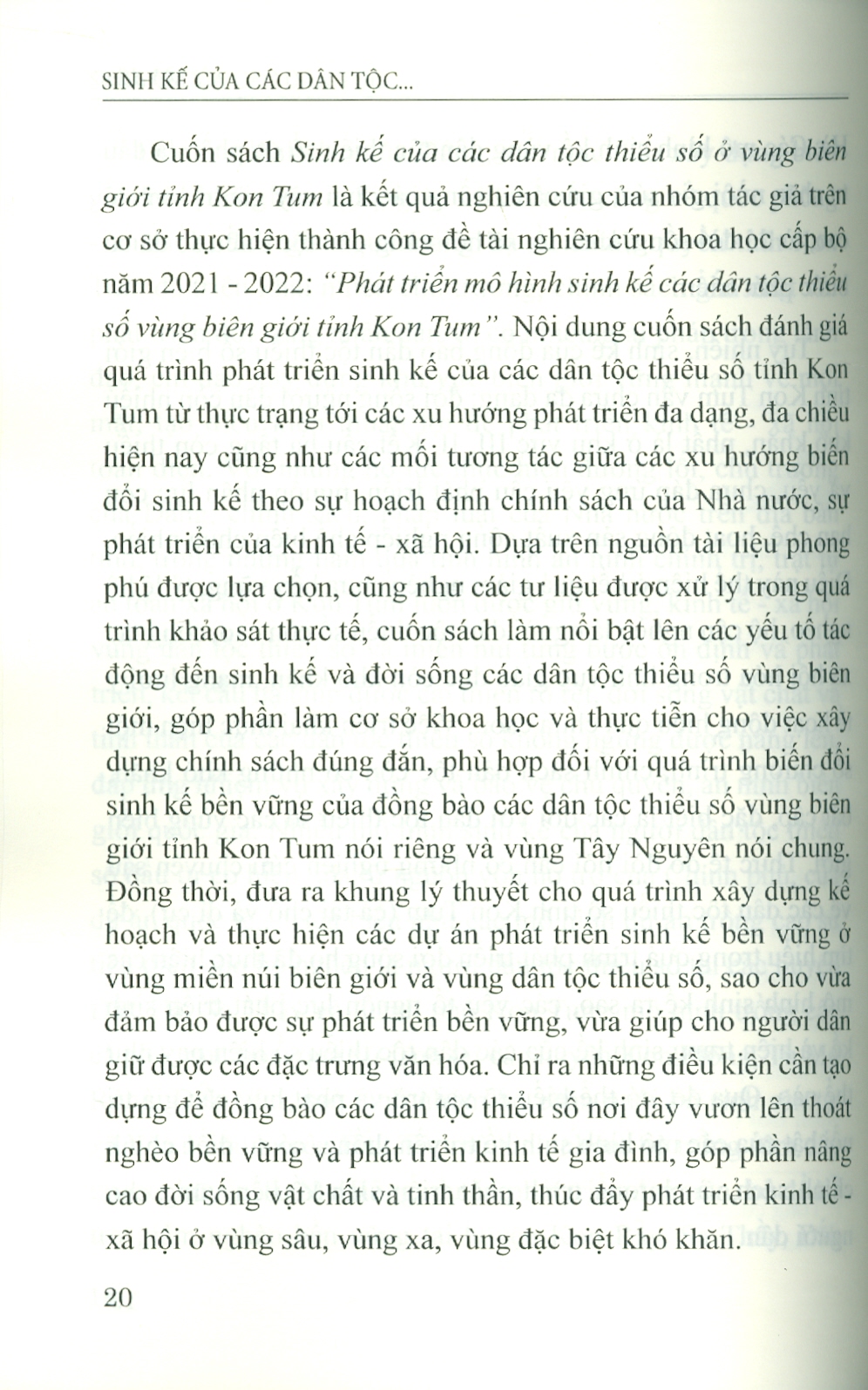 ✨Sinh Kế Của Các Dân Tộc Thiểu Số Vùng Biên Giới Tỉnh Kom Tum (Sách chuyên khảo) - TS. Dương Thị Ngọc Bích chủ biên