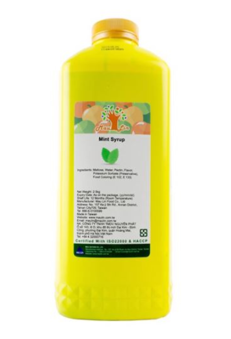 Siro Bạc Hà Maulin(Maulin Mint Syrup) – Chai 2,5kg Siro Bạc Hà Maulin (Maulin Mint Syrup) – Nguyên liêu pha chế cho trà sữa hương thơm hảo hạng. Maulin là một thương hiệu công ty thực phẩm của Đài Loan. Nơi đây vốn được coi là quê hương của trà sữa. Ngày nay, Maulin đã trở thành một thương hiệu nổi tiếng về thực phẩm và đồ uống. Các sản phẩm của công ty gồm có hạt cafe, các loại bột điều vị, hạt thủy tinh dùng và đặc biệt về siro cho trà sữa. Sản phẩm của công ty đạt được chứng nhận ISO22000, HACCP, HALAL. Đây đều là các tiêu chuẩn khắt khe về quản lý cũng như VSATTP quốc tế. Thị trường phân phối sản phẩm chính của công ty là Đài Loan, Trung Quốc và khu vực Đông Nam Á. Hơn nữa, sản phẩm của Maulin cũng đang được kinh doanh tại các thị trường như Mỹ, Đức, Anh, Úc… hay Nhật Bản, Hàn Quốc. Ứng dụng của Siro Maulin Bạc Hà trong pha chế: Mint – tiếng Việt là Bạc hà, là loại lá có tinh dầu thơm được ứng dụng phổ biến trong y học và thực phẩm. Siro Maulin Bạc Hà là nguyên liệu pha chế chuyên dụng để pha chế trà sữa với hương thơm của vị Bạc hà tự nhiên. THÔNG SỐ SẢN PHẨM – Tên sản phẩm: Siro Maulin Bạc Hà – Thành phần: Nước ép bạc hà, đường, chất điều chỉnh độ acid: axit citric, chất bảo quản, sulphur dioxide, màu thực phẩm tự nhiên và tổng hợp, hương thực phẩm tổng hợp. – Hướng dẫn sử dụng: Dùng để chế biến các món ăn, đồ uống (trà sữa, soda, coktail, đá bào,). Ví dụ: làm món trà sữa bạc hà: sau khi pha trà sữa xong, bỏ thêm siro bạc hà vào, lắc đều, thêm topping, đá nữa là hoàn thành. – Hạn sử dụng: 12 tháng kể từ ngày sản xuất. Hạn sử dụng và ngày sản xuất in trên bao bì của sản phẩm. – Bảo quản: để nơi thoáng mát tránh ánh nắng chiếu trực tiếp, sau khi mở nắp cần bảo quản lạnh và dùng nhanh. – Quy cách: 2,5kg/ chai; 6 chai/ thùng. – Xuất xứ: Đài Loan.