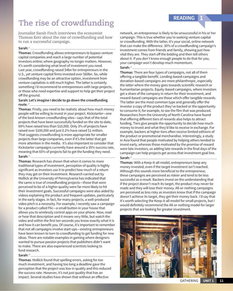 Each unit begins with a stunning visual as well as a discussion point and infographic to orient students and engage them with the unit’s theme. Each unit opening section contains authentic Reuters video, which presents engaging real-world topics to spark ideas and debate. The video can be streamed online or downloaded from the Student’s Resource Center. Unit topics mirror those in Skillful Listening & Speaking so both books can be used alongside each other.