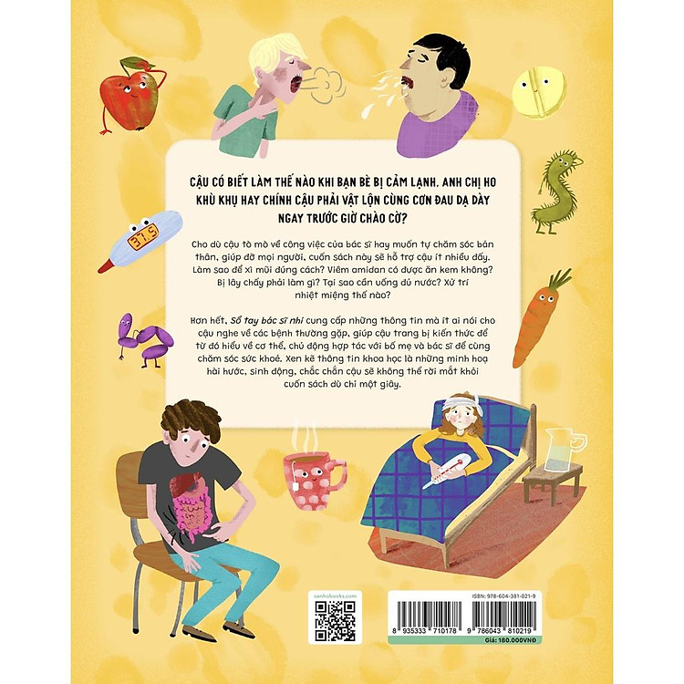 Dù bạn nhỏ tò mò về công việc của bác sĩ hay muốn tự chăm sóc bản thân, giúp đỡ mọi người, cuốn sách này sẽ hỗ trợ ít nhiều. Làm sao để xì mũi đúng cách? Viêm amidan có được ăn kem không? Bị lây chấy phải làm gì? Tại sao cần uống đủ nước? Xử trí nhiệt miệng thế nào?