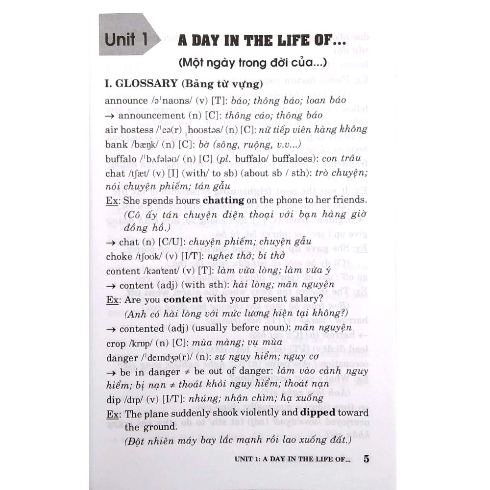 Mỗi đơn vị bài học gồm: Glossary (bảng từ vựng), Grammar (ngữ pháp), Sentence patterns (mẫu câu).