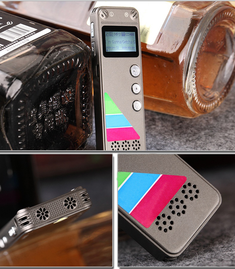 • Độ nhạy cao thiết kế microphone kép ghi đầy đủ âm thanh stereo 384Kbps HD PCM tuyến tính ghi chức năng ghi âm một nút