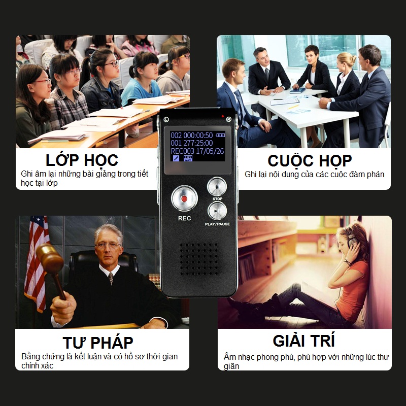 Máy ghi âm kỹ thuật số đơn giản đầy phong cách này có thể được mang đi bất cứ đâu để ghi lại âm thanh trong các bài giảng, cuộc họp, cuộc trò chuyện và