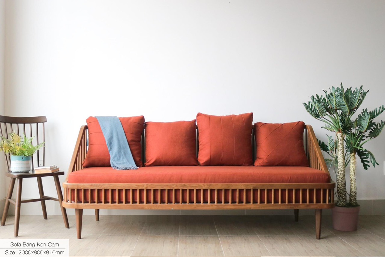 ✨Sofa băng gỗ nệm Juno Sofa Model 2024 Dài 2m x 80 x 81 cm bao gồm 4 gối tựa vuông