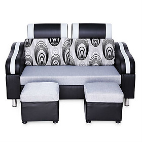 • Sofa Băng Kèm 2 Ghế Đôn Juno Sofa - Đen Phối Xám (160 x 70 cm) được bọc simili bền đẹp, dày chắc.