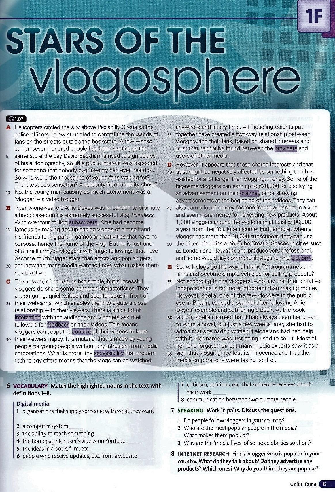 Solutions Upper-Intermediate SB | Unit 1 | текст Stars of Vlogosphere -1