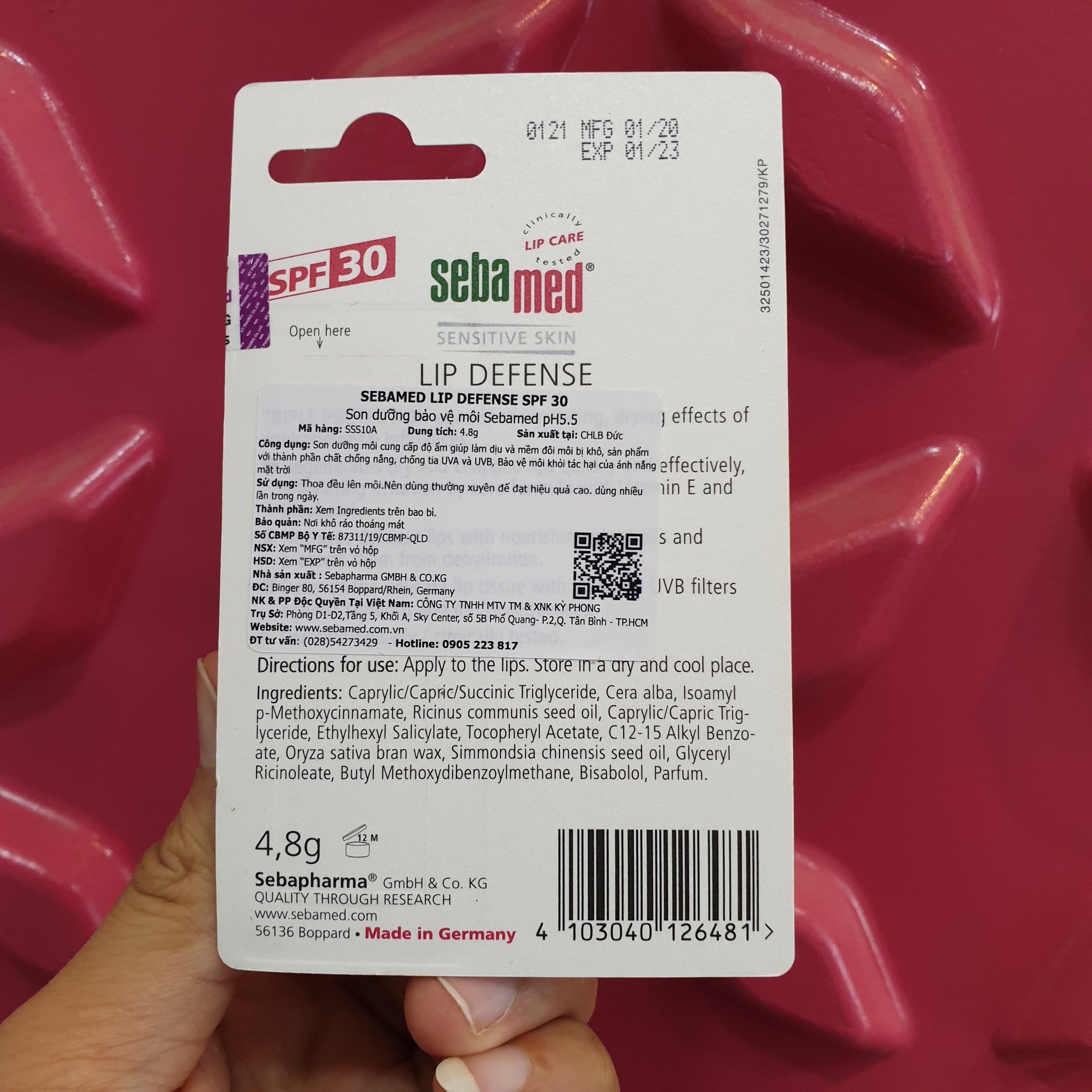 Hiện nay, có rất nhiều thương hiệu son dưỡng nhưng nổi bật nhất là các thương hiệu dược mỹ phẩm dưỡng vì phương pháp vừa làm đẹp vừa an toàn. Cũng không quá thắc mắc khi các sản phẩm dược mỹ phẩm luôn là xu hướng dưỡng được các beauty blogger nhắc đến nhiều nhất trong nhiều năm qua vì độ uy tín, an toàn và hiệu quả tuyệt vời đã được kiểm nghiệm rất nghiêm ngặt và được công nhận trên rất nhiều quốc gia Châu Âu. Son dưỡng bảo vệ tái tạo, nuôi dưỡng, bảo vệ và chống nắng. Bảo vệ, chống khô và chống nứt môi được Kiểm nghiệm Da liễu và Lâm sàng đảm bảo mang lại làn môi mịn màng. Giàu vitamin E ngăn ngừa tác hại từ các gốc tự do, giúp cấp ẩm cho môi, tinh dầu jojoba, cám gạo, cây thầu dầu giúp chữa lành và bảo vệ đôi môi không bị bong tróc, khô, thiếu nước. Tránh được các tác nhân môi trường giúp môi luôn mềm mịn và quyến rũ. Hoạt chất chống nắng với chỉ số SPF 30 bảo vệ đôi môi trước tác hại của tia UVA và UVB, hạn chế thâm môi. Không chất bảo quản, không gây kích ứng. Công dụng Sebamed pH5.5 Sensitive Skin Lip Defense: