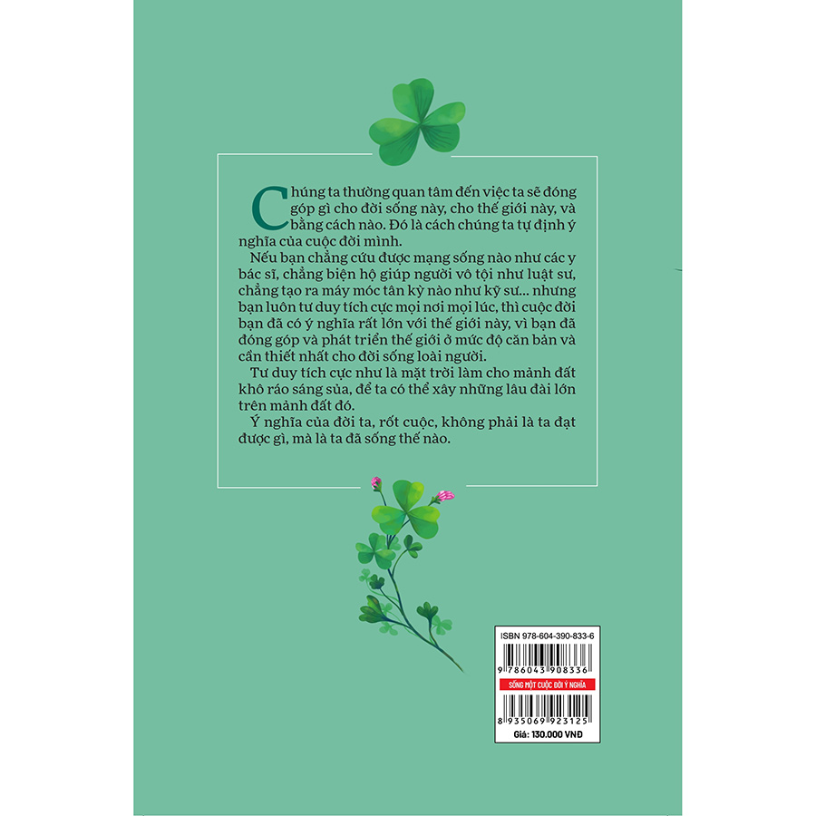 Cuốn sách trả lời cho câu hỏi mà mỗi người vẫn định nghĩa cuộc đời ý nghĩa là cuộc đời như thế nào, ghi danh gì với cuộc sống. Và tác giả khăng định Nếu bạn chẳng cứu được mạng sống nào như các y bác sĩ, kéo ai ra khỏi tù như luật sư, tạo ra máy móc tân kỳ nào như kỹ sư… nhưng bạn luôn tư duy tích cực mọi nơi mọi lúc, thì cuộc đời bạn đã có ý nghĩa rất lớn với thế giới này, vì bạn đã đóng góp và phát triển thế giới ở mức độ căn bản và cần thiết nhất cho đời sống loài người. Ý nghĩa của cuộc đời mỗi người, rốt cuộc, không phải là ta đạt được gì, mà là ta đã sống thế nào, bình lặng và tích cực đối diện với những chuyện xảy ra trong cuộc sống với trái tim nhiều yêu thương.